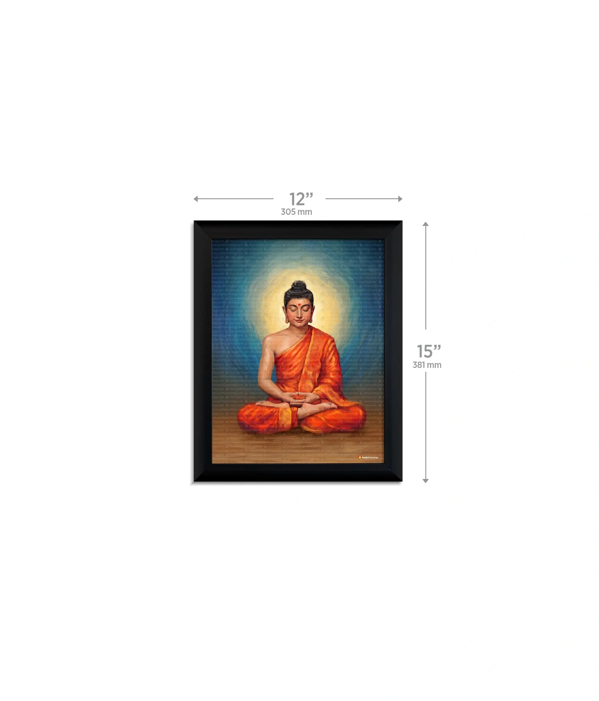 A serene depiction of Lord Buddha in deep meditation, this Buddha painting reflects peace, mindfulness, and inner awakening. Lord Buddha, born as Prince Siddhartha, renounced worldly pleasures in search of truth and attained enlightenment under the Bodhi tree. As the enlightened one, he taught the path to end suffering through mindfulness, compassion and wisdom.